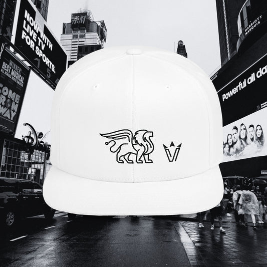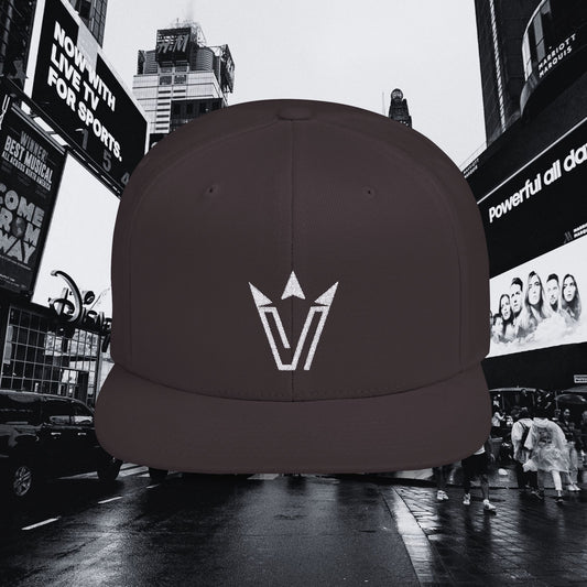 V FOR VIKTAURI Stylish Flat Bill Snapback Hat with Crown Logo - Casual Wear for Street Style Enthusiasts